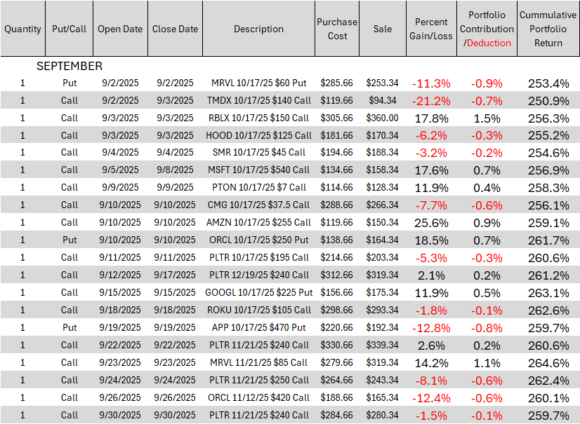 Most investors struggle with options trading in large part because of a lack of a disciplined risk control process, whereas our subscribers are systematically profiting from market volatility in both directions, by capturing winners and managing losses with established risk limits. Since July 2024, as of 9/30/25, our options trading portfolio has delivered a remarkable 272.1% return, dramatically outpacing the S&P 500's 17.5% gain.