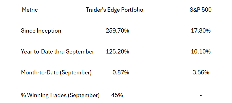 Trader’s Edge Results for the Month of September