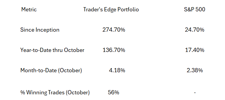 Since its launch in July 2024, Trader's Edge has delivered a remarkable 274.7% return (as of the end of October, 2025), dramatically outpacing the S&P 500's 17.4% gain.